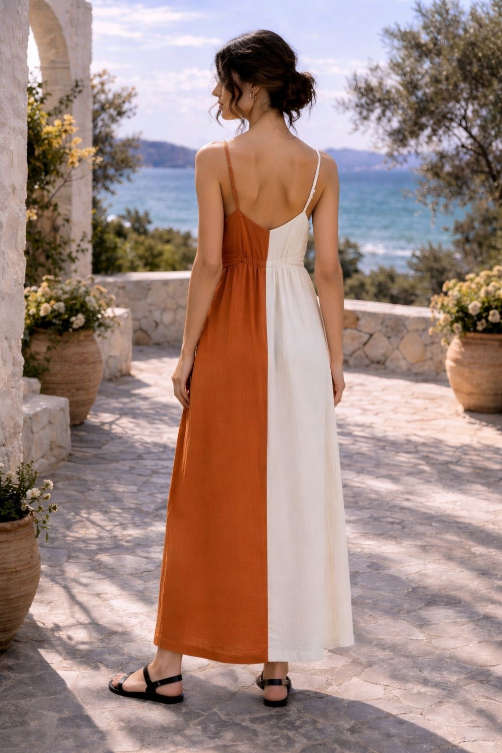 Thin straps and a fluid silhouette enhance the sense of freedom and