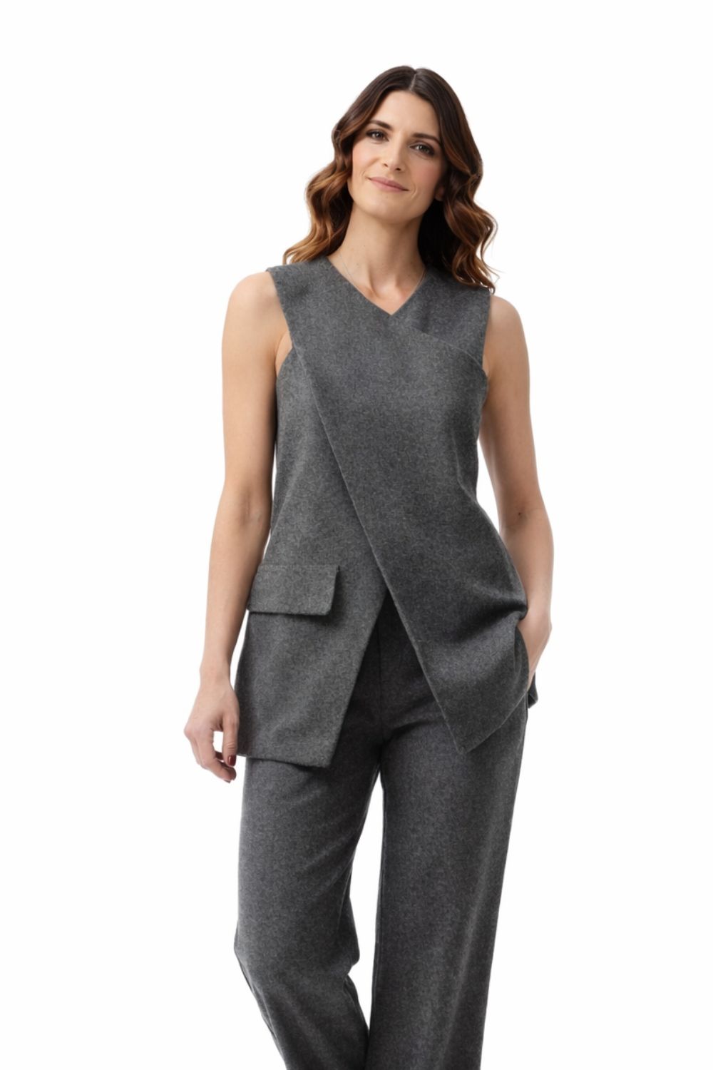 Upgrade your style with a touch of contemporary elegance. The Bold Vest Π-01 – Grey is the perfect choice for women who appreciate quality and comfort without compromise.