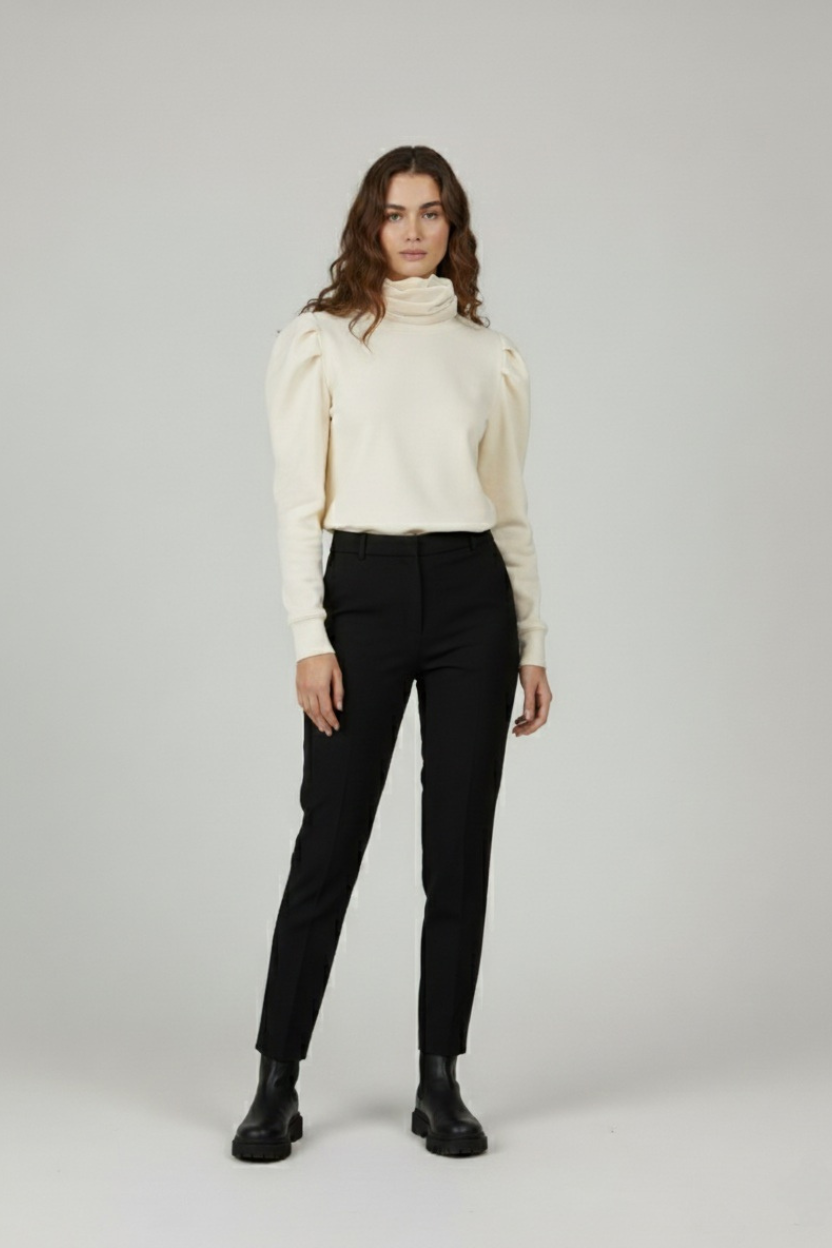 This ecru long-sleeved sweatshirt, made from 100% cotton, combines comfort with style. Its distinctive feature is the detachable turtleneck collar, which offers versatility in styling.