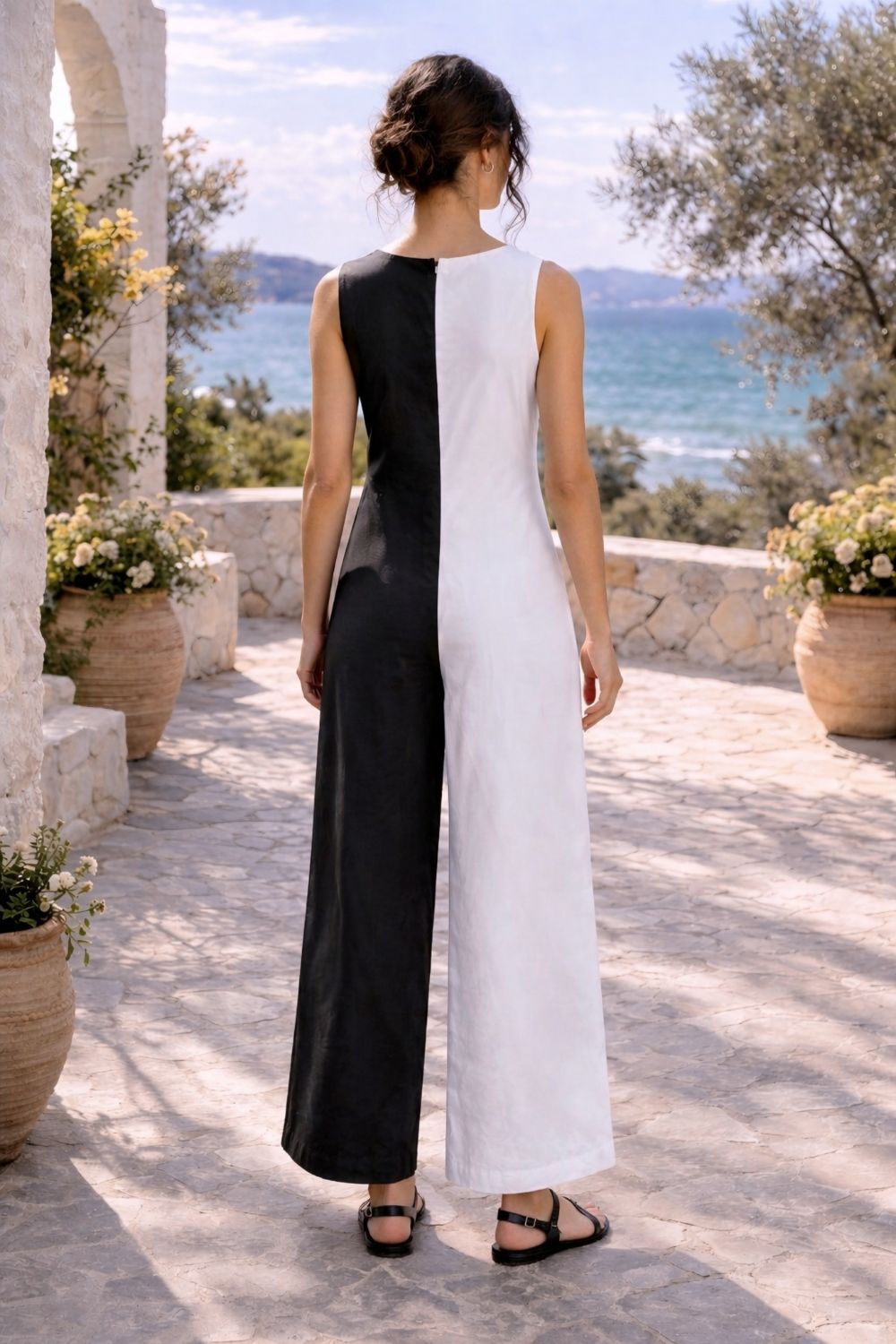 wide palazzo-style legs offer an airy sensation, making it ideal for hot summer